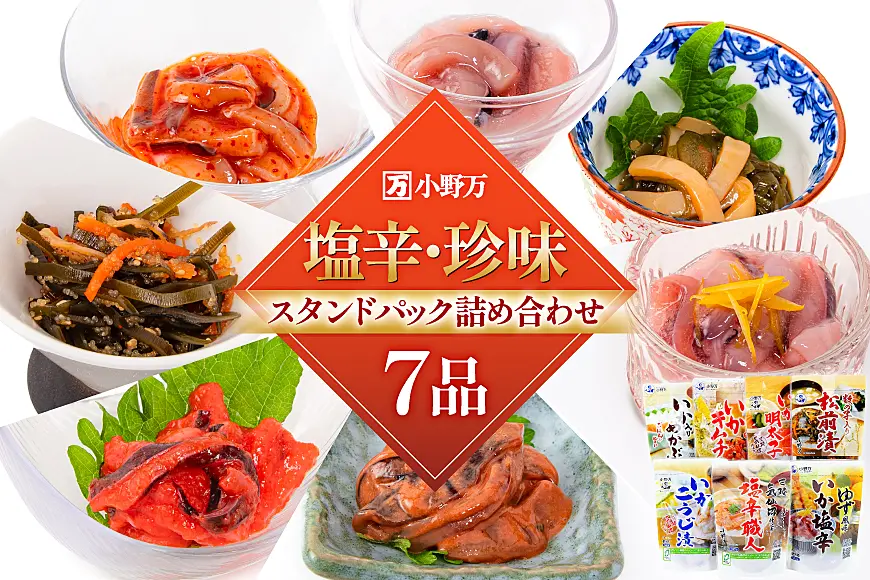 塩辛・珍味 スタンドパック 詰め合わせ 7品セット [小野万 宮城県 気仙沼市 20565726]