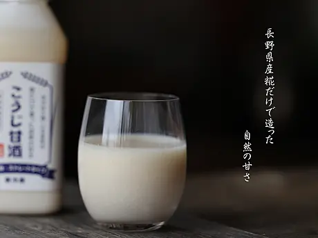信州さくほの水源地の水と長野県産米100%使用の優良な糀だけで造ったこうじ甘酒は、