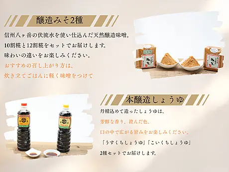 天然醸造製法にこだわり熟成した 天然醸造みそ2種と本醸造しょうゆ2種セット〔YK-05〕