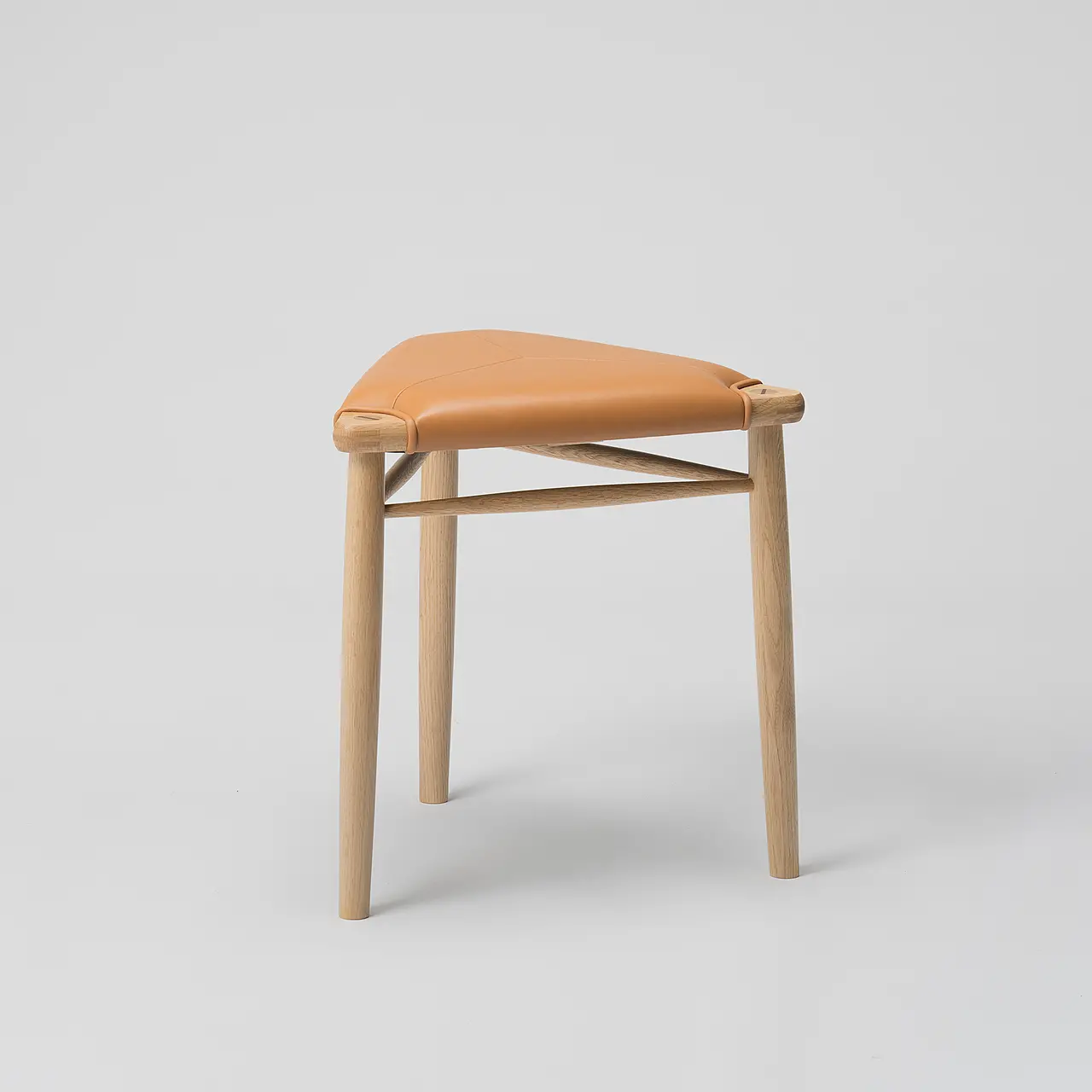 【木と暮らしの工房】H.O.スツール <樹種:ナラ/座面:本革(キャメル)>
