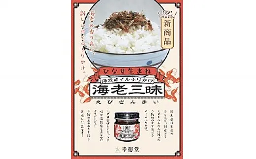 海老三昧は日生産干しエビと国産アミエビをふんだんに使ったご飯にのせて食べるオイルふりかけです。エビの香ばしさと旨みが塩昆布とおかかにベストマリアージュ!ご飯のおかわり間違いなしです!
