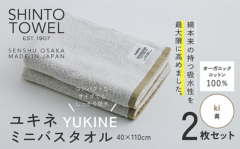 099H4002 SHINTO TOWEL「ユキネ・ミニバスタオル」ki(黄)2枚セット オーガニックコットン100%