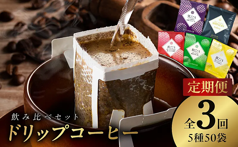 099Z148 ドリップコーヒー 5種 50袋 定期便 全3回 飲み比べセット【毎月配送コース】