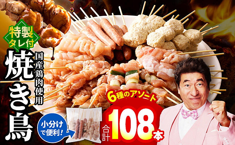 020C532 焼き鳥 6種108本セット 総量2.97kg やきとりのタレ付き 個包装
