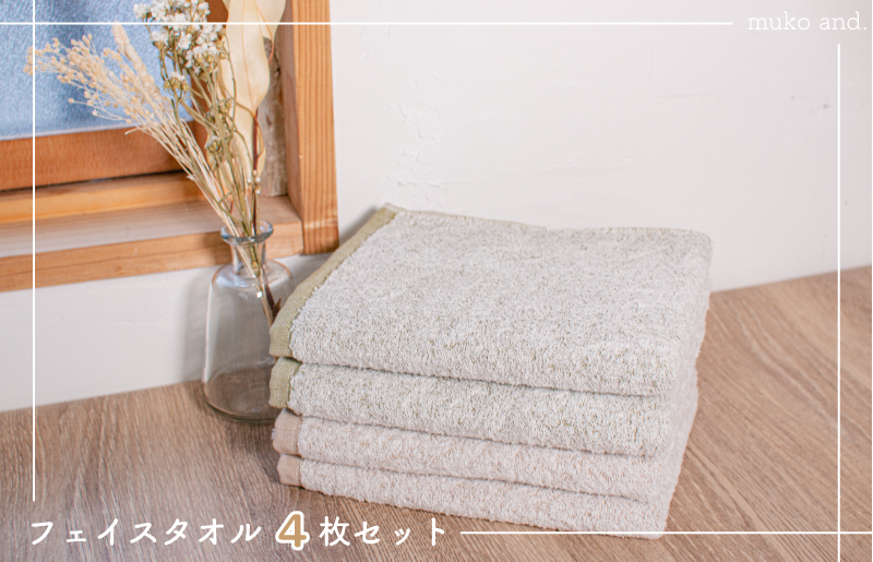 099H1683 ムコタオル 透かし織りフェイスタオル 4枚セット(カーキ・ブラウン)