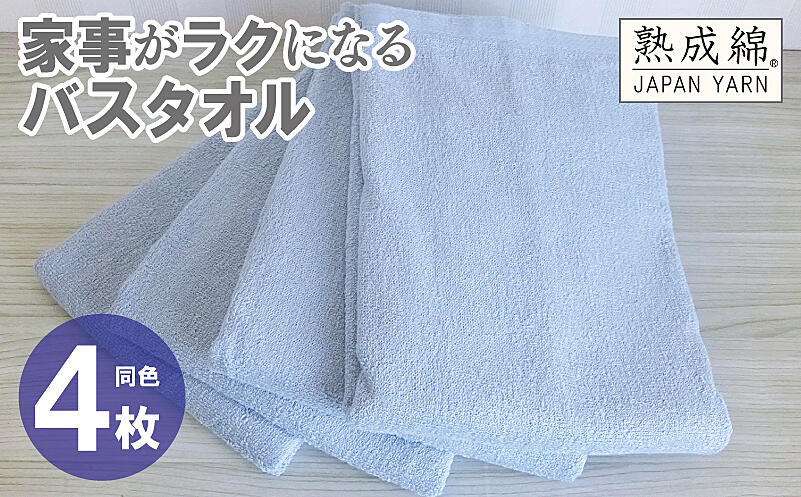 knt0083 家事がラクになるバスタオル 4枚【アッシュブルー 泉州タオル】