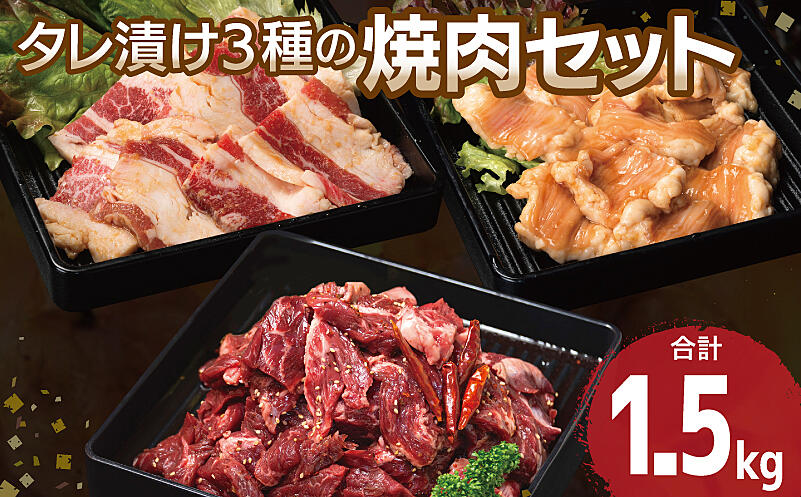 G3416 【タレ漬け3種の牛焼肉セット】 満足牛ハラミ・牛カルビ・シマチョウ 合計1.5kg