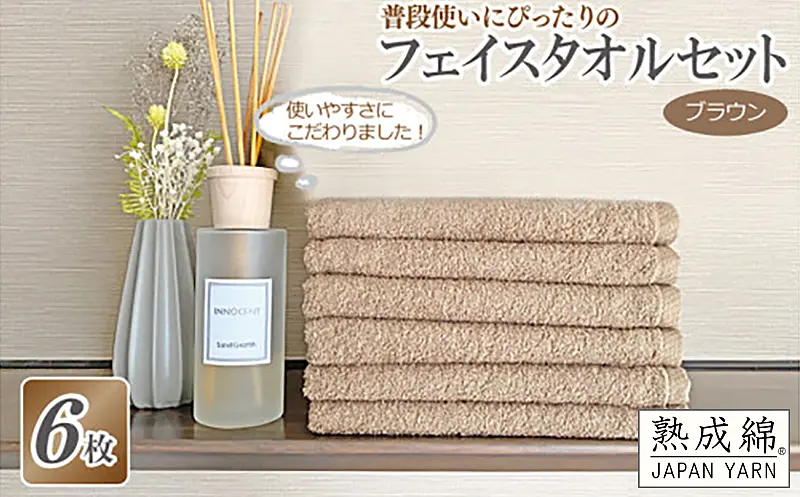 knt0022 普段使いにぴったりのフェイスタオル 6枚セット ブラウン 泉州タオル