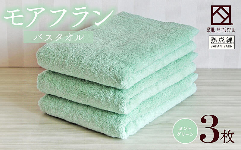 099H4060 泉州タオル「モアフラン」バスタオル 3枚 ミントグリーン