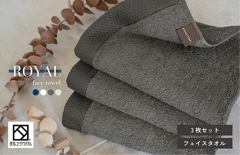 G3198 【スピード発送】ロイヤルフェイスタオル チャコール3枚