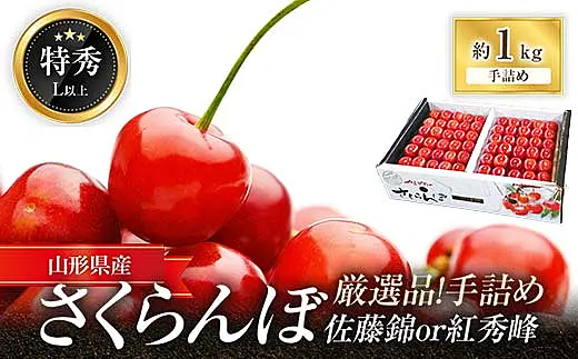 【令和8年産先行予約】 厳選品!手詰め さくらんぼ 「佐藤錦または紅秀峰」 約1kg (特秀 L以上) [1114]