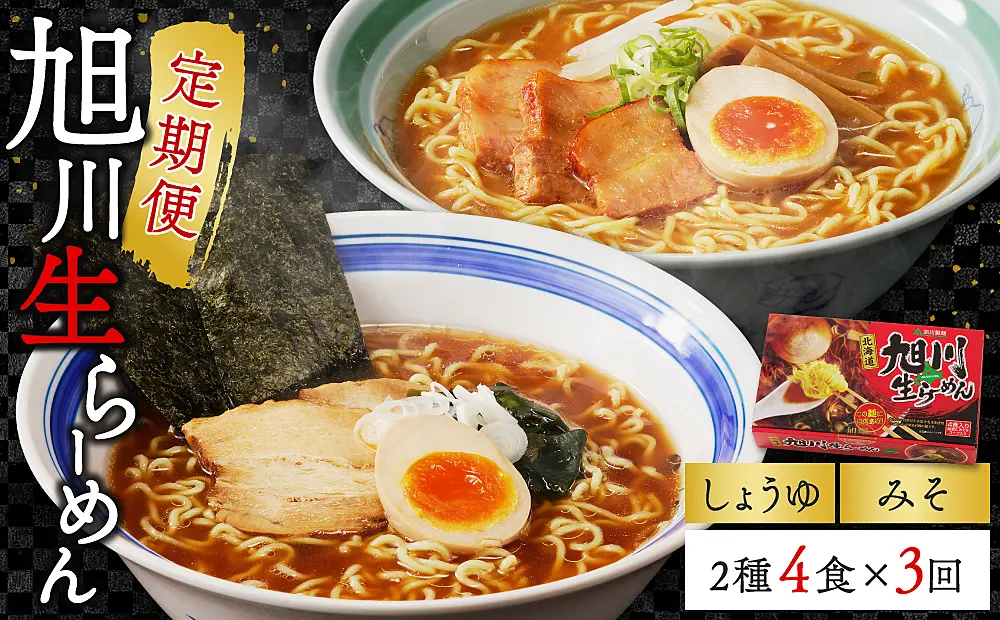 【3ヵ月定期便】旭川生らーめん4食セット(醤油・味噌)