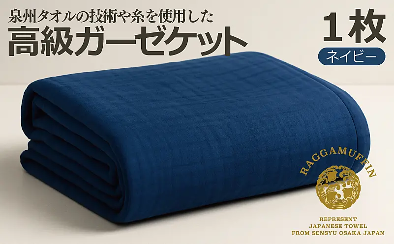 099H2466 高級泉州タオル ラガマフィン 高級ガーゼケット ネイビー