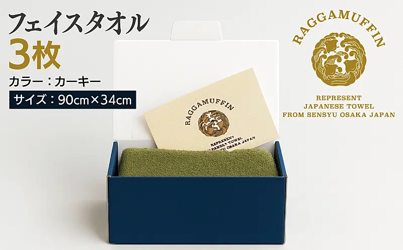 099H2484 高級泉州タオル ラガマフィン フェイスタオル カーキー 3枚