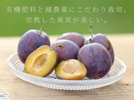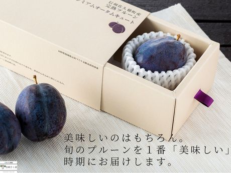 糖度20度以上を保証し厳選された大玉で、紫紺に輝く果実と黄金比の果実はプルーンの最高峰の証。