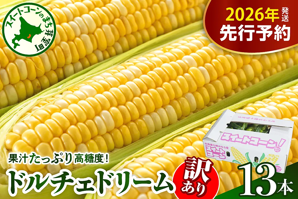 【訳あり】【先行受付】北海道十勝芽室町 スイートコーン ドルチェドリーム 13本 me062-003c-26