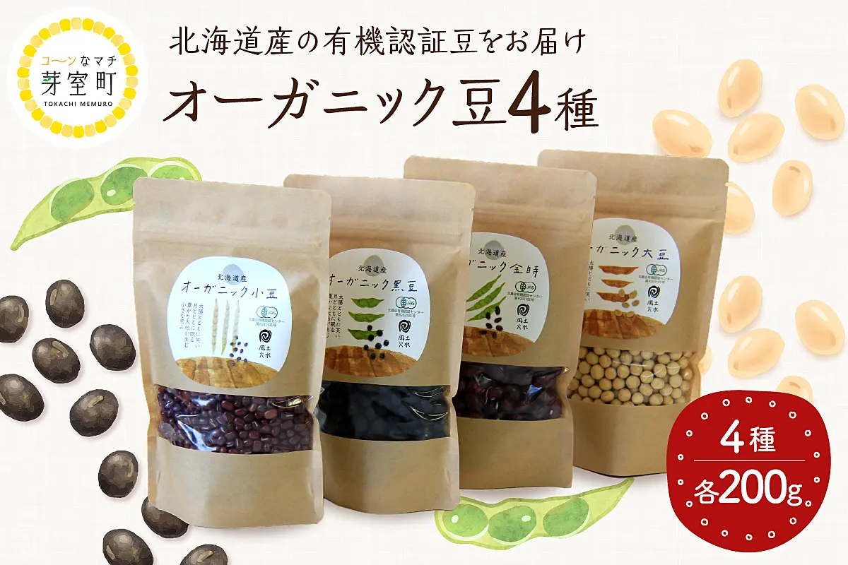 北海道芽室町 北海道産オーガニック豆4種セット me059-006c