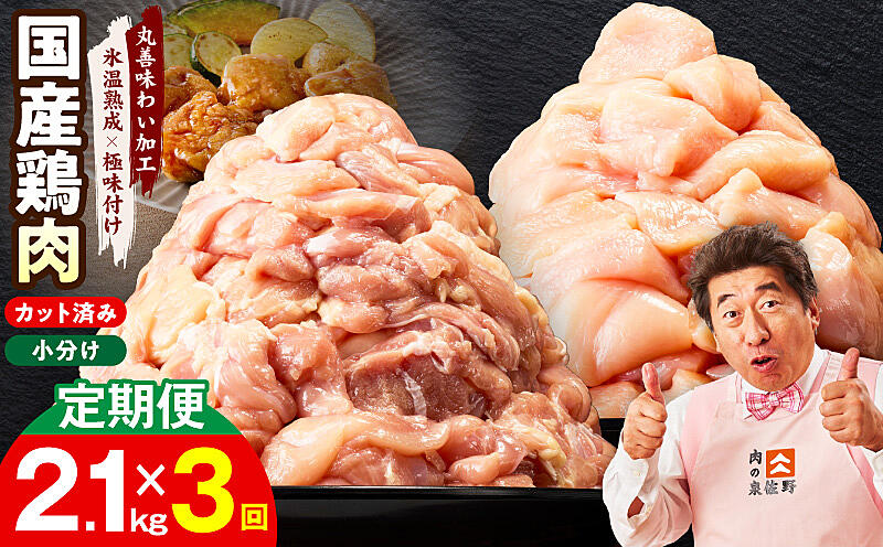 mrzZ043 【カット済み】国産 鶏肉セット 定期便 2.1kg(もも & むね) 全3回