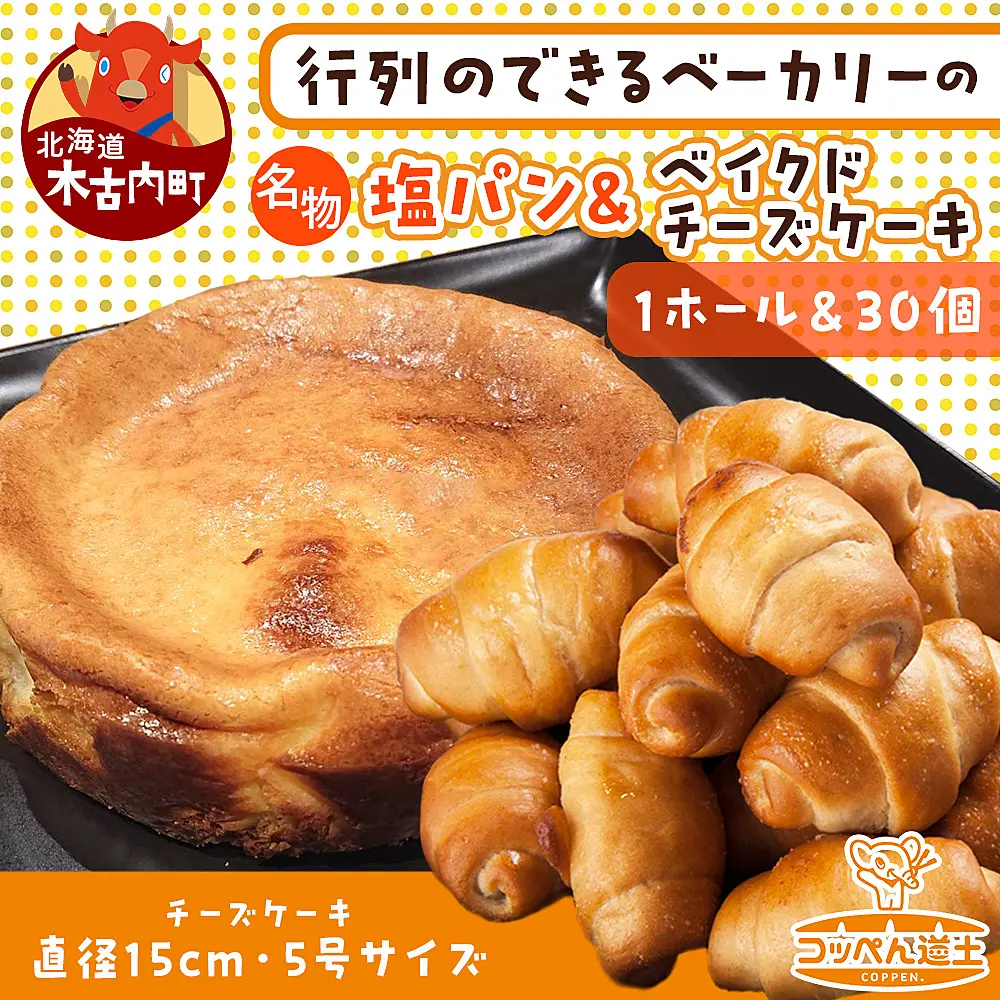 北海道 濃厚クリームチーズのベイクドチーズケーキ 1個 塩パン 30個