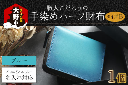 【6色から選べる】職人こだわりの手染めハーフ財布(タイプB)【ブルー】【イニシャル名入れ対応】[J-024002_01]