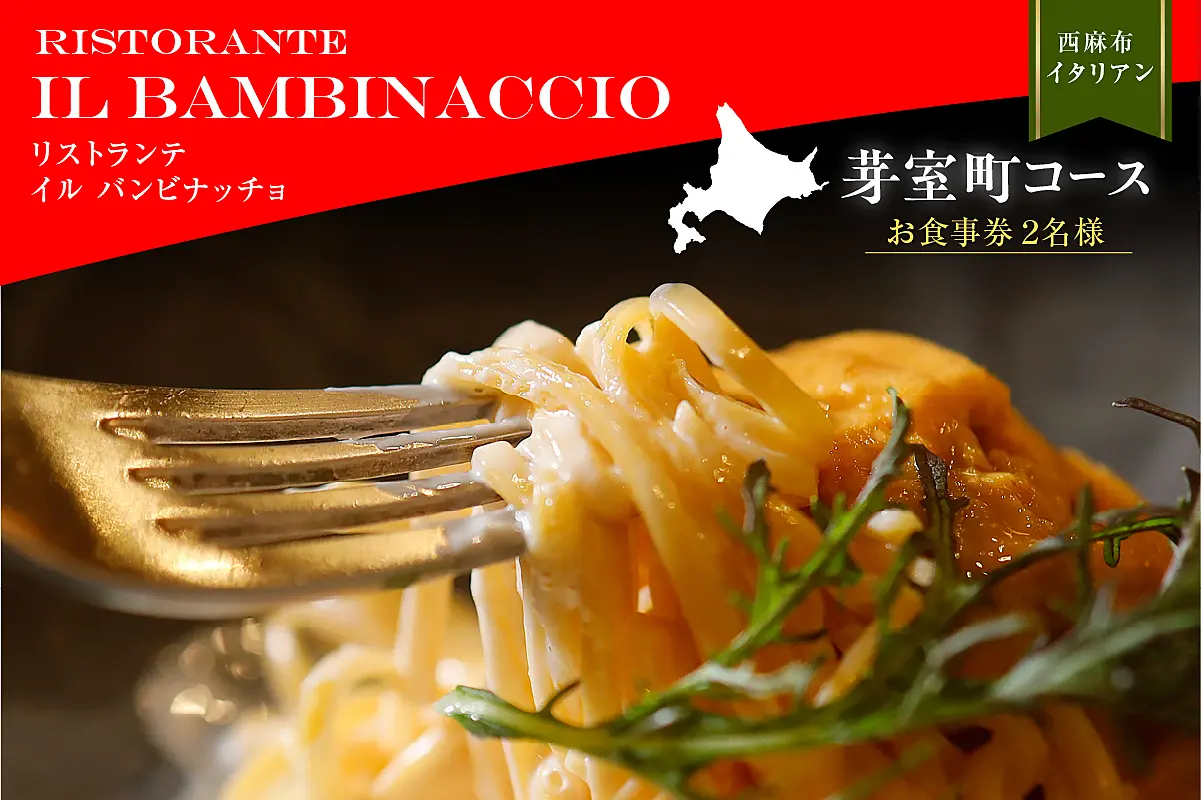 【西麻布 イタリアン】イル・バンビナッチョ「芽室町コース」食事券2名様分 me061-052-2