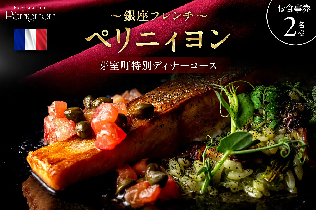 【銀座 フレンチ】ペリニィヨン 正統フレンチレストラン「芽室町特別ディナーコース」食事券2名様分 me061-037-2