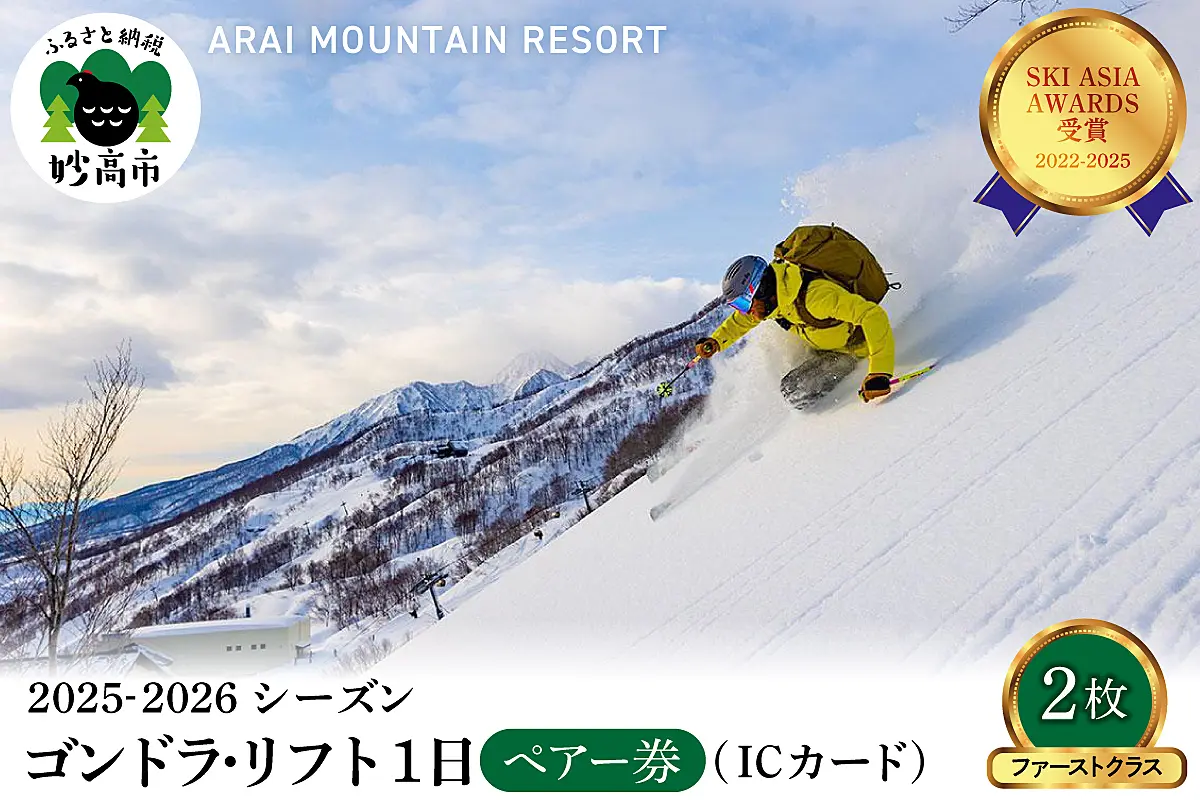 アライマウンテンリゾート2025-2026シーズン ゴンドラ・リフト1日券(ICカード)ファーストクラス2枚