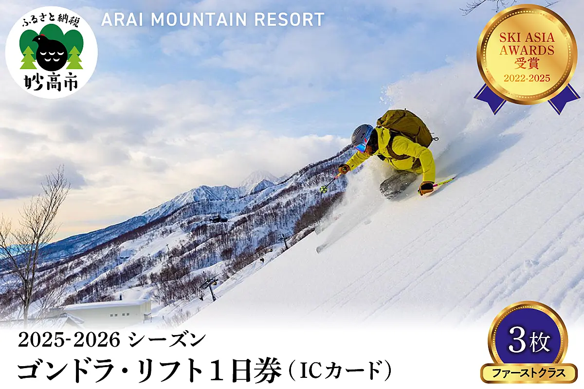 アライマウンテンリゾート2025-2026シーズン ゴンドラ・リフト1日券(ICカード)ファーストクラス3枚