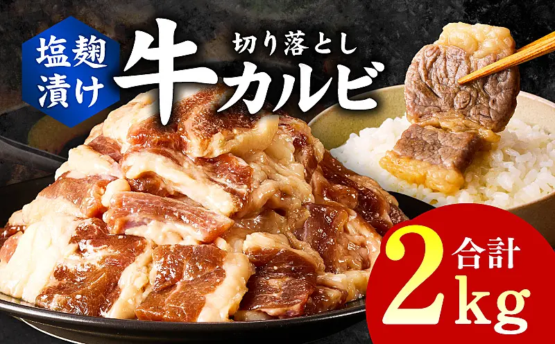 099H3396 牛カルビ焼肉用 塩麹漬け 合計2kg【味付け 小分け 焼くだけ 簡単調理 BBQ 牛肉 250g×8袋】