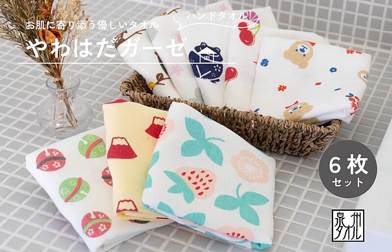 G2026 【スピード発送】やわはだガーゼハンドタオル 柄おまかせ6枚セット