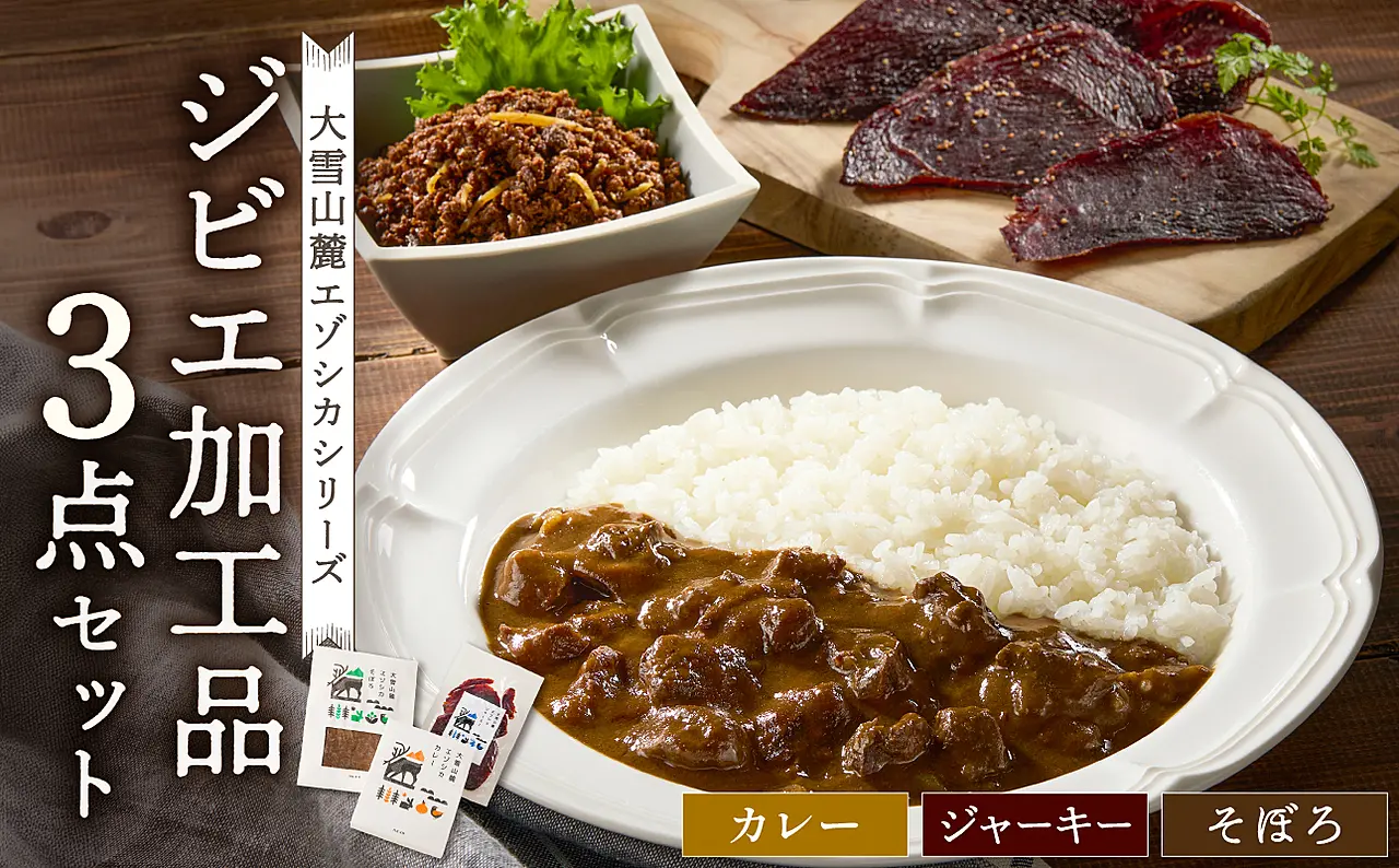 ジビエ加工品3点セット 大雪山麓エゾシカシリーズ(カレー・ジャーキー・そぼろ)