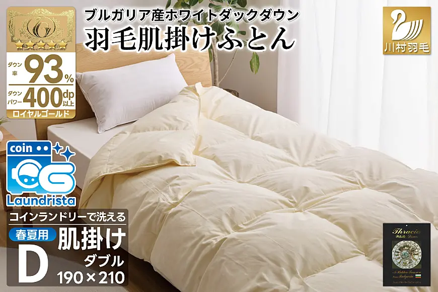 【春夏用】洗える! 羽毛布団 ダウンケット ダブル ホワイトダック93% 0.6kg アイボリー [20745034]