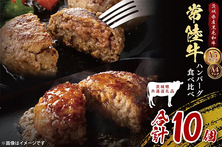 【茨城県共通返礼品】常陸牛100% vs 常陸牛入りハンバーグの食べ比べセット (計10個入り)常陸牛使用(DD021)