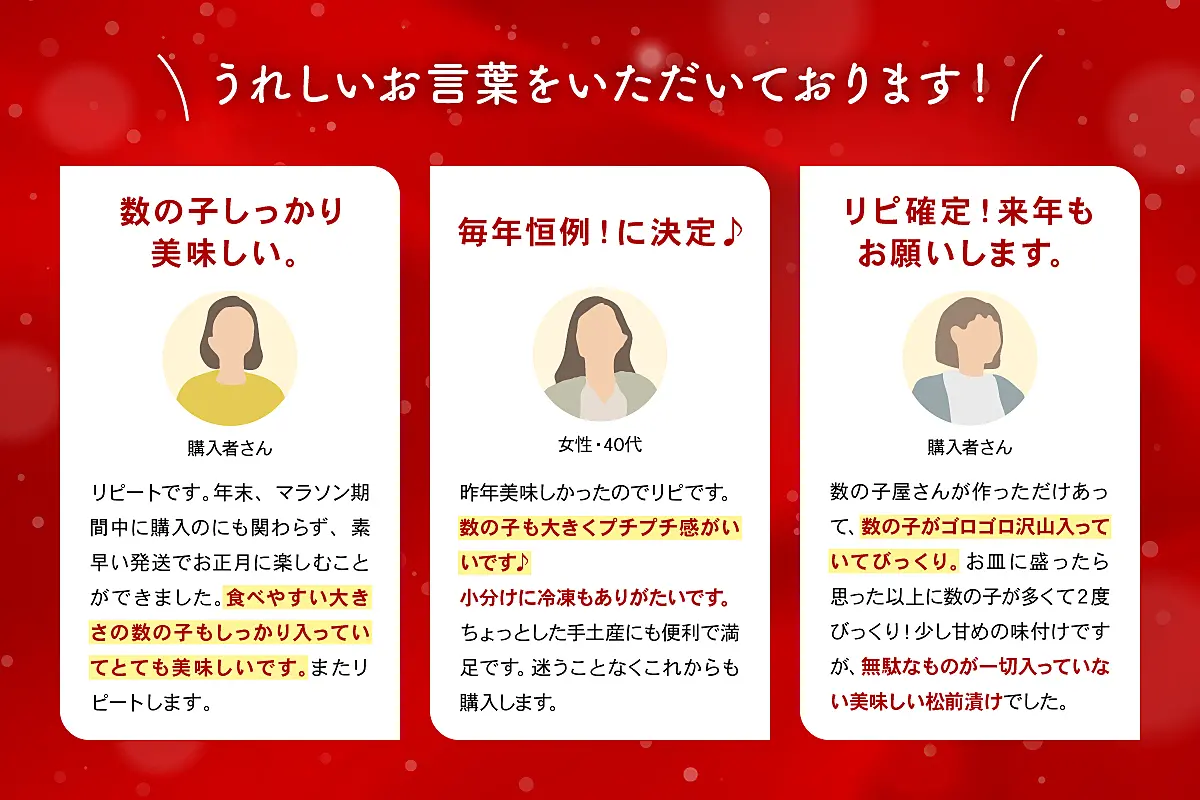 ・松前漬の特性上、完全に凍らない場合があります。味や品質に問題はございません。安心してお召し上がりください。