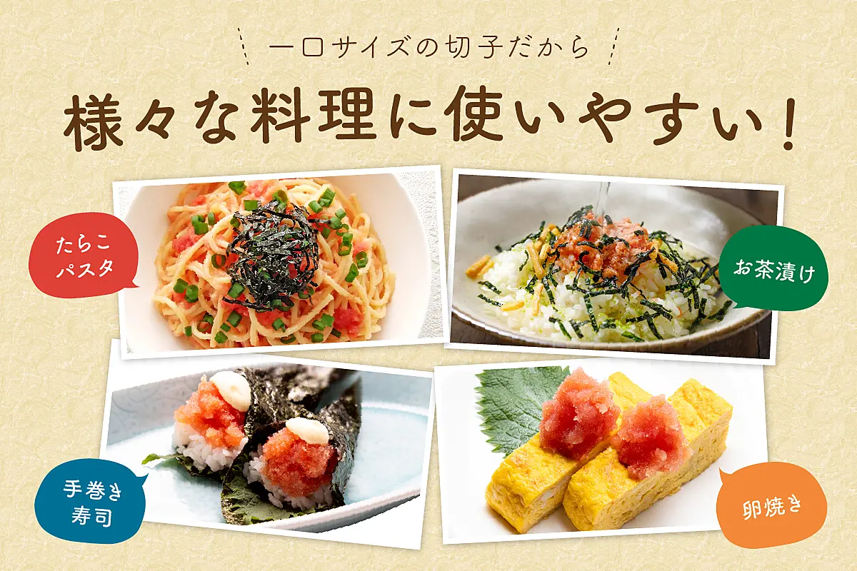 ご飯にのせるだけでなく、明太パスタや明太チャーハンなど様々な料理にもご使用いただけます。
