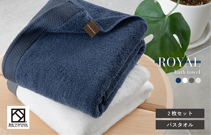 G3272 【スピード発送】ロイヤルバスタオル 2枚(ホワイト・ネイビー 各1枚)【日本製 泉州タオル 吸水 日用品 たおる】
