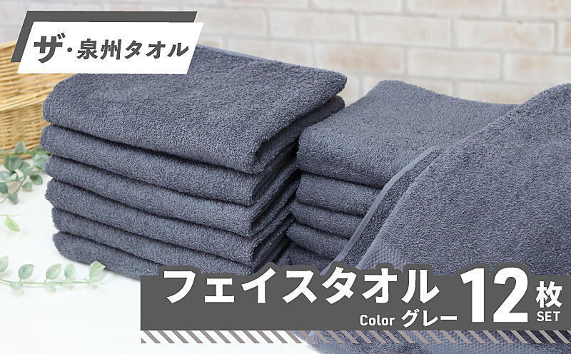 015B518 【スピード発送】ザ・泉州タオル (グレー 約33×86cm 12枚) ボーダーつきフェイスタオル