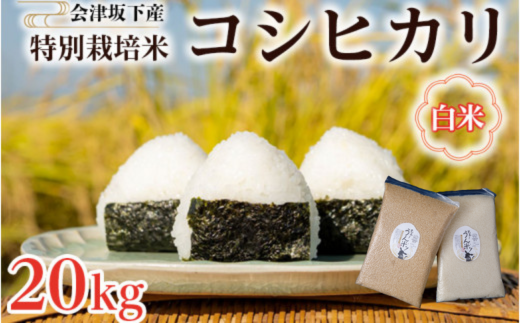 51-A 会津坂下町産 特別栽培米コシヒカリ 20kg(5kgx4) 白米 FARMiliarほり の 「もぉ~うん米」◇
