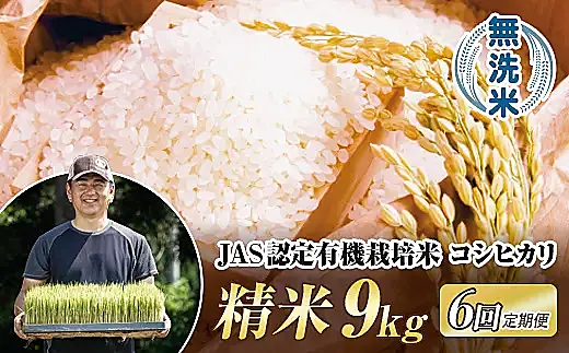 <定期便6ヶ月> JAS認定 有機栽培米 西会津産米 コシヒカリ 無洗米 9kg(4.5kg×2袋) F4D-2080