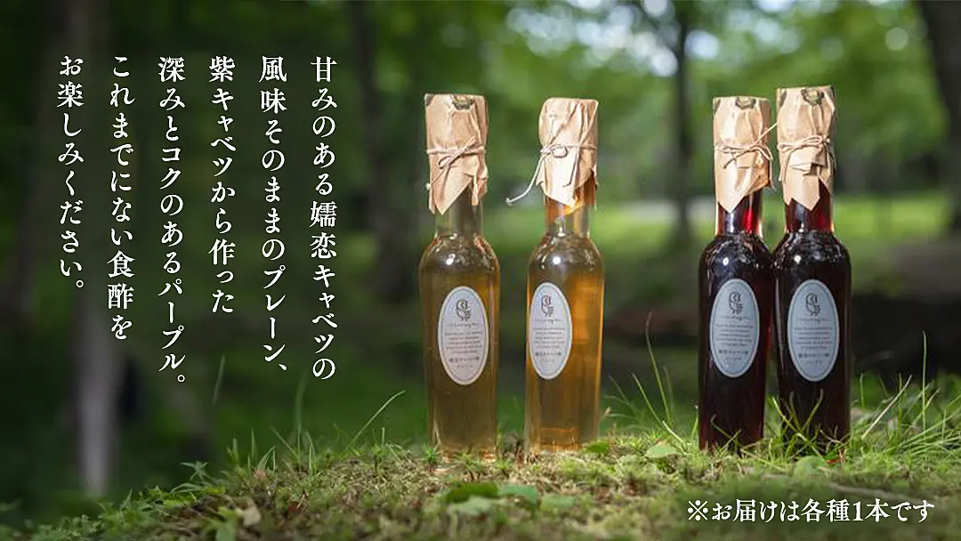 キャベツの風味そのままのプレーン、深みとコクのあるパープルの2本セットでお届けします。