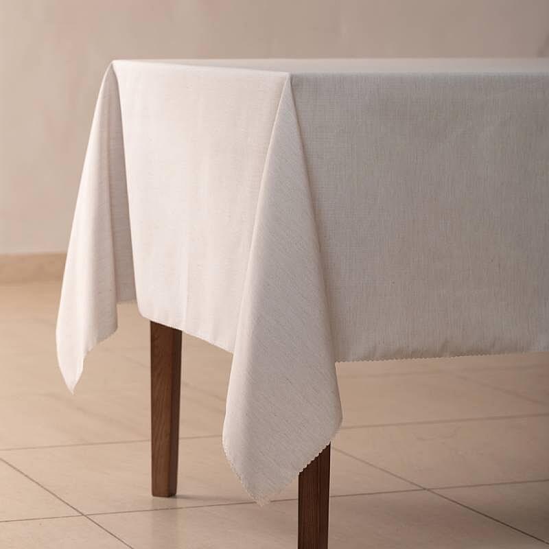 さまざまな食器の色や柄、スタイルともに幅広く合わせやすいテーブルクロスです。