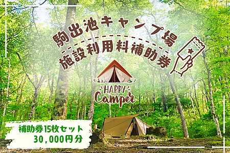 【2026シーズン】信州さくほ 駒出池キャンプ場 施設使用料補助券15枚セット 30,000円分〔AD-111-03〕