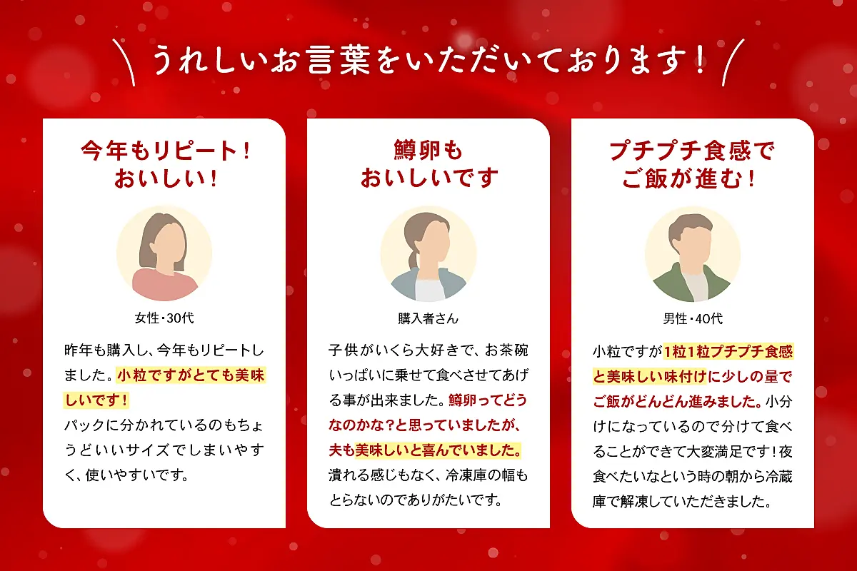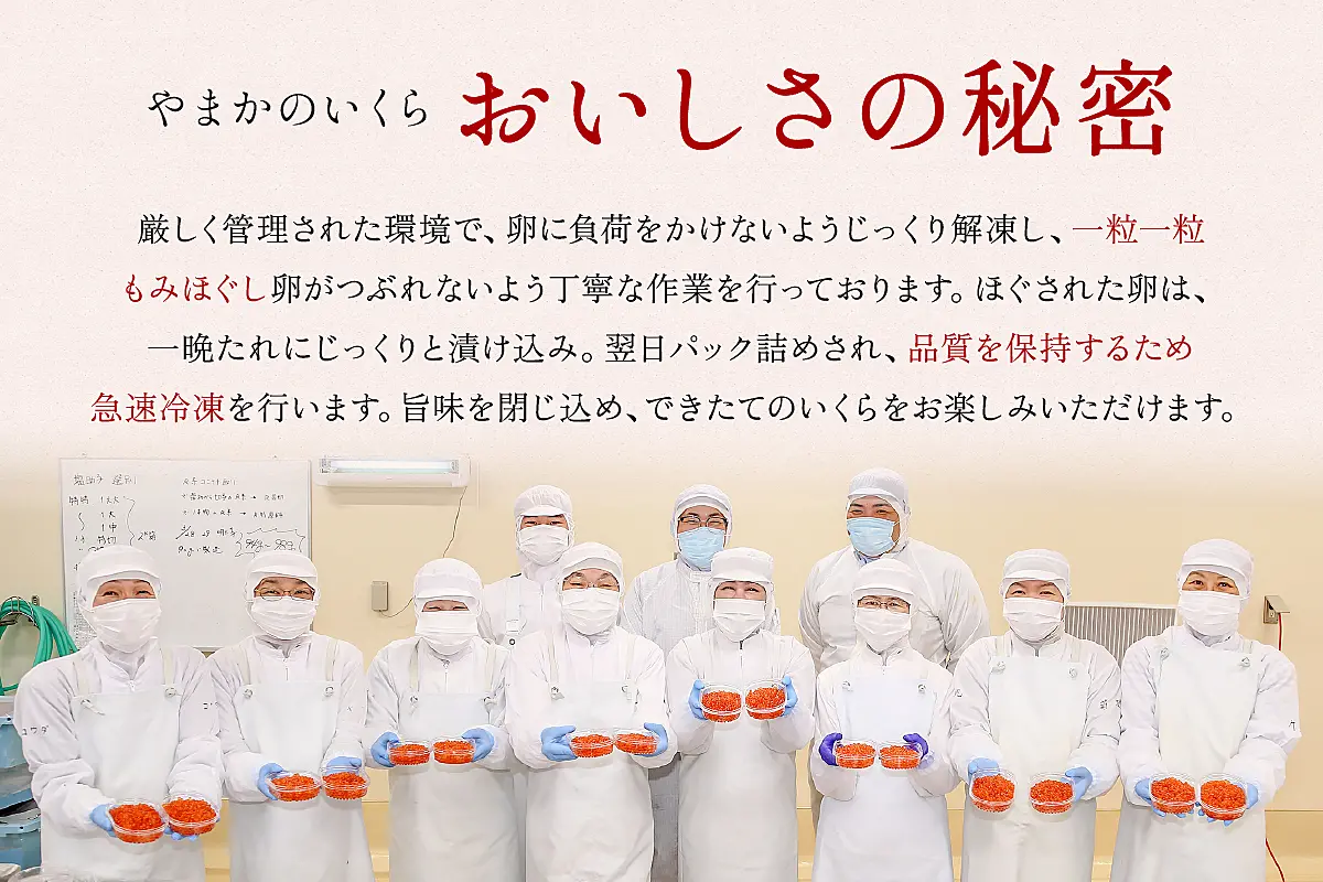 口の中でプチっとはじけ、ジュワっと広がる濃厚なイクラの味をお試しください。