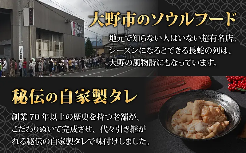 越前おおの全国ホルモン(とんちゃん)大会初代優勝、日本一に輝いた自慢の一品です。