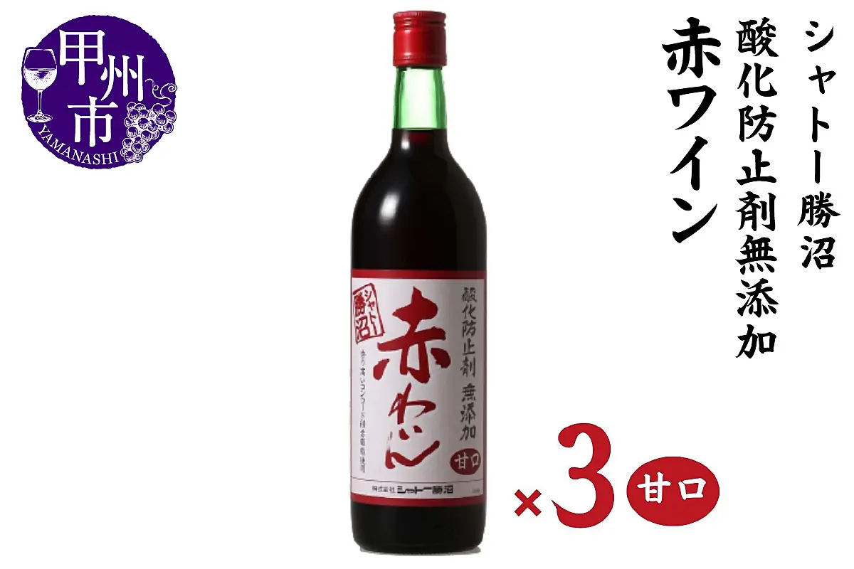 シャトー勝沼 酸化防止剤無添加赤わいん甘口3本セット(MG)B13-663