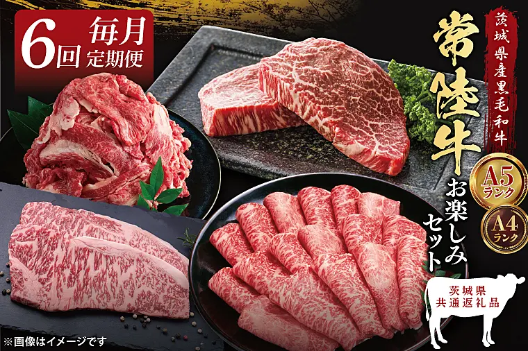 【6回定期便】最高級A4.5ランク常陸牛 お楽しみセット【茨城県共通返礼品】|ブランド牛 銘柄牛 和牛 黒毛和牛(DD005)