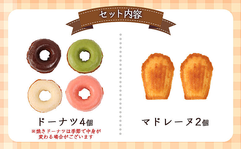 焼きドーナツセット 4個入り(季節で中身変わる)マドレーヌ2個、フィナッシェ2個流氷クッキー2個【09001】