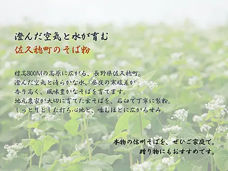長野県が10年の歳月をかけ誕生した「信州ひすいそば」を佐久穂町でこだわりを持って育てました。