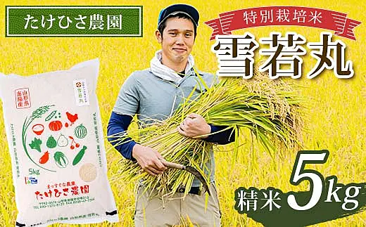 令和7年産 特別栽培米 雪若丸 (精米) 5kg 『たけひさ農園』 山形県 南陽市 [2365]