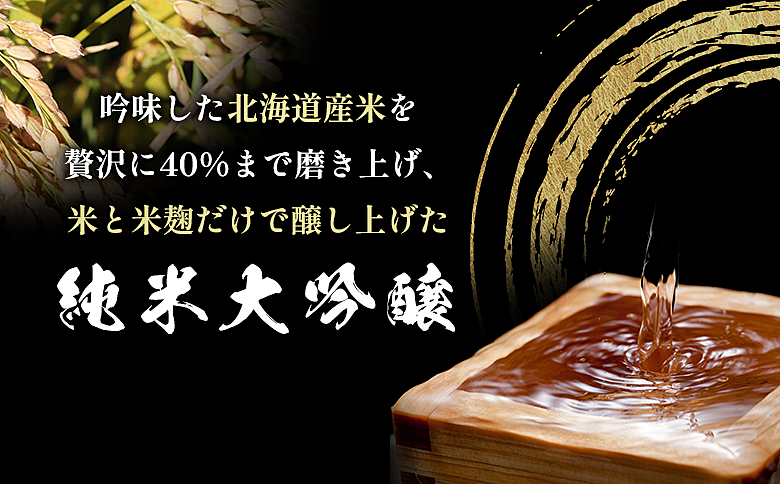 ●酒質 アルコール分 15~16度、日本酒度 -2、酸度 1.3、北海道産「きたしずく」40%精米